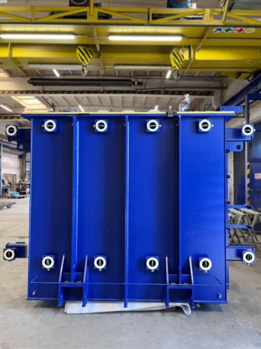 Právě jsme v Hořických strojírnách dokončili dodávku transformátorů, které jsou chlazeny olejem. Tyto jedinečně barevné komponenty míří do elektrické rozvodny Pivot Power-Nursling ve Velké Británii.
